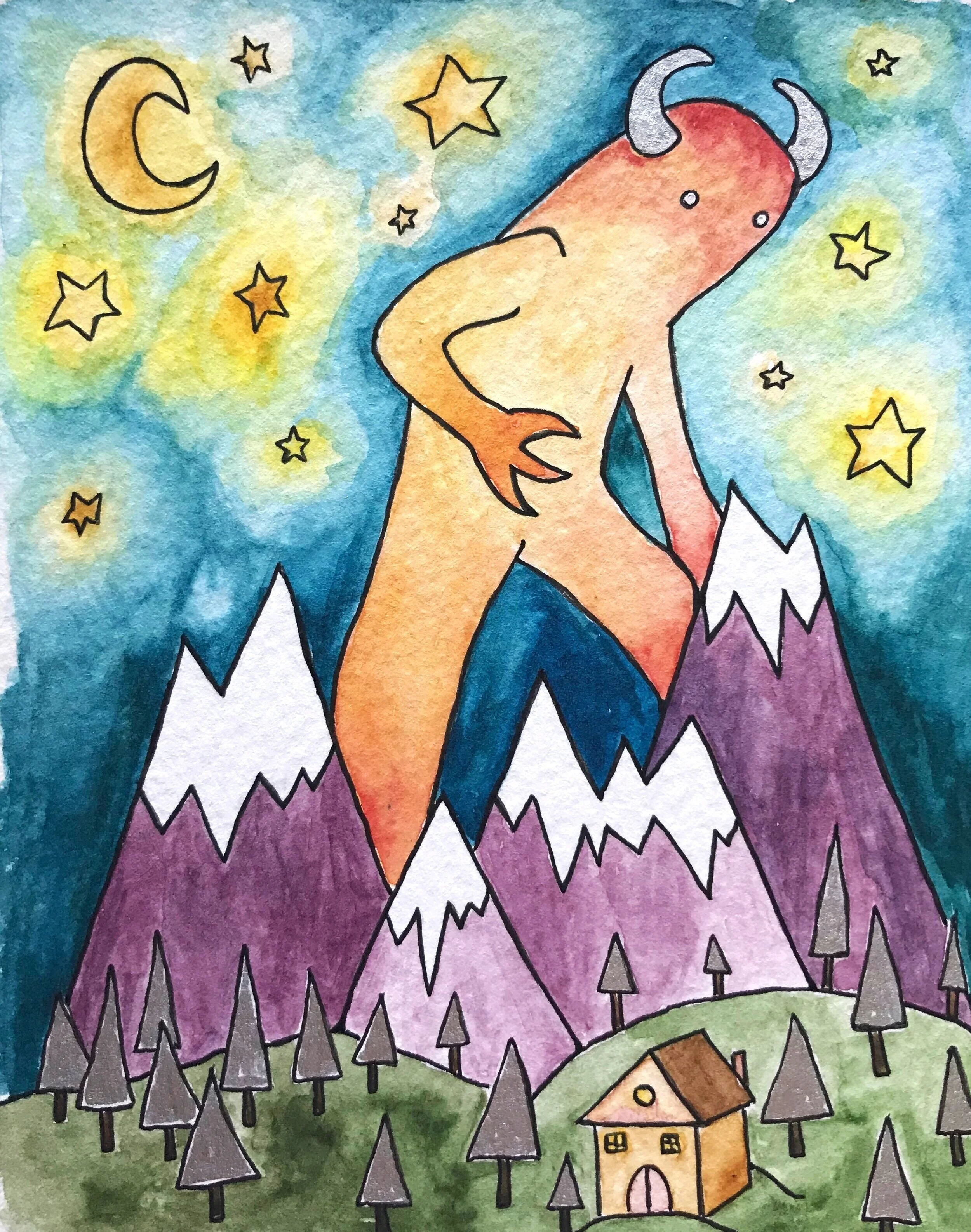 Protecting his town beneath the mountains, Simon does his best to give the community what it needs. Occasionally, his intentions become misguided - like the time he put hats on all of the trees because the thought it would keep them warm (after all, he saw the humans do it for themselves).